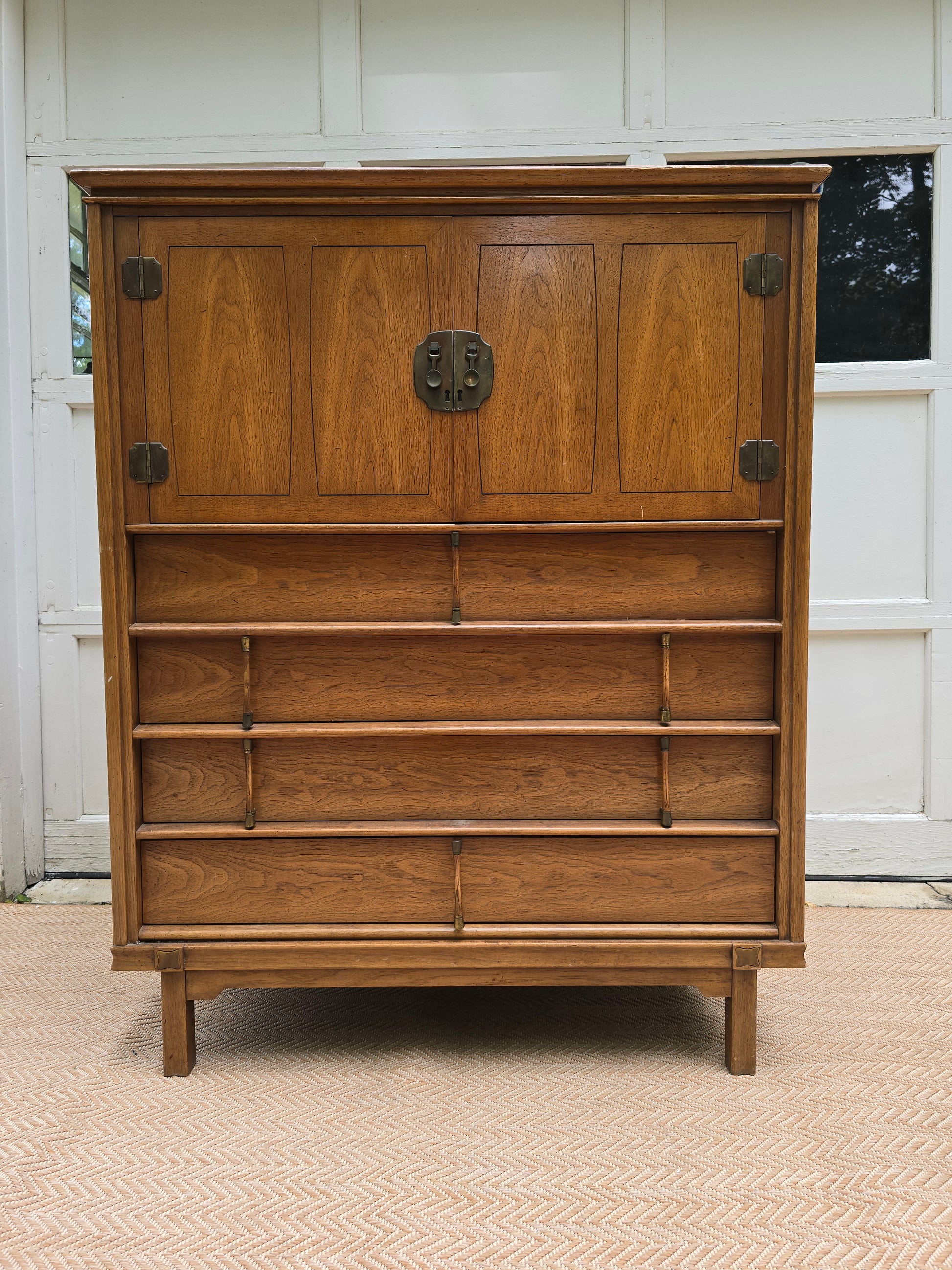 20th Century Thomasville Mystique Hollywood Regency Walnut Highboy Chest
