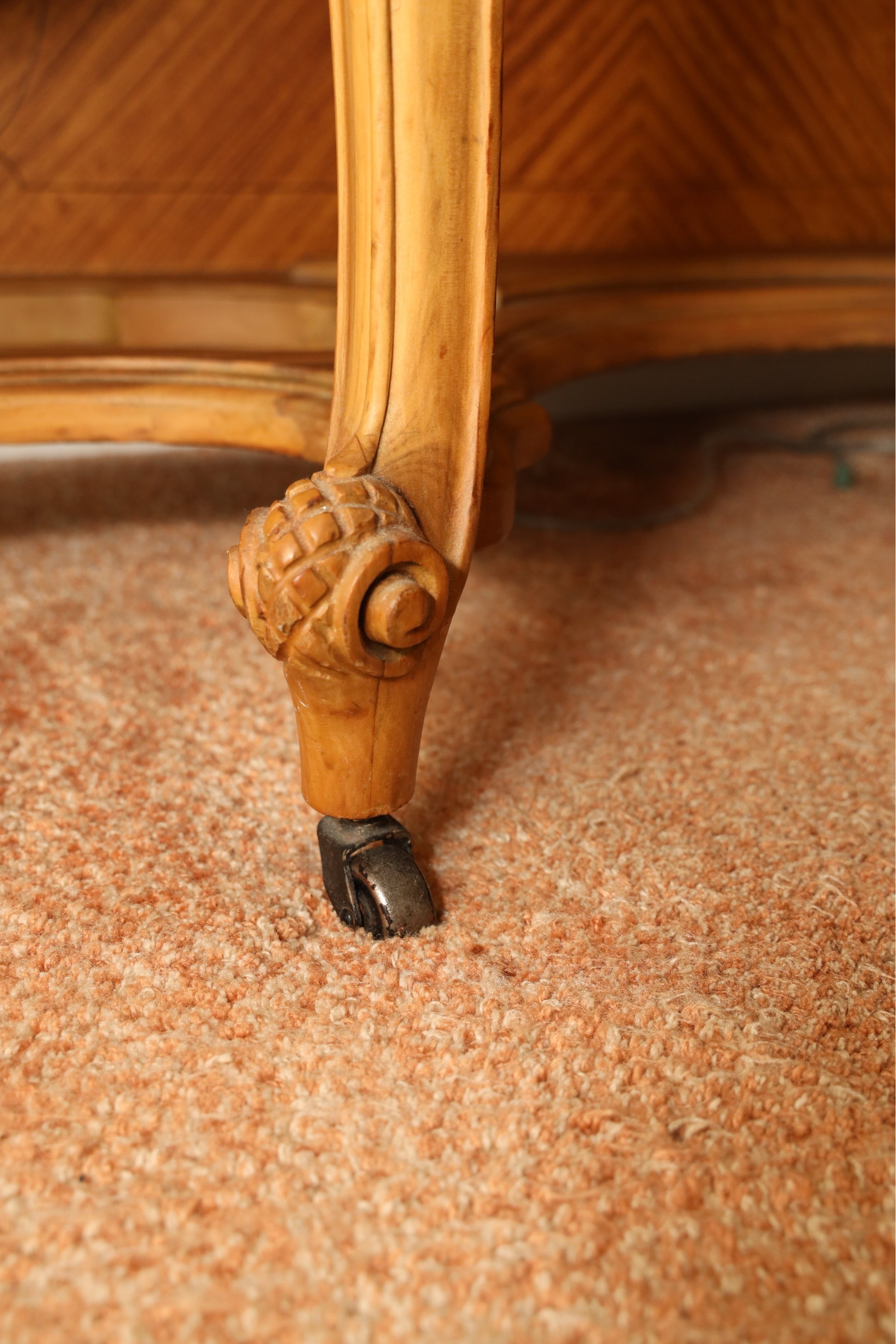 Serpentine front with richly carved cabriole legs