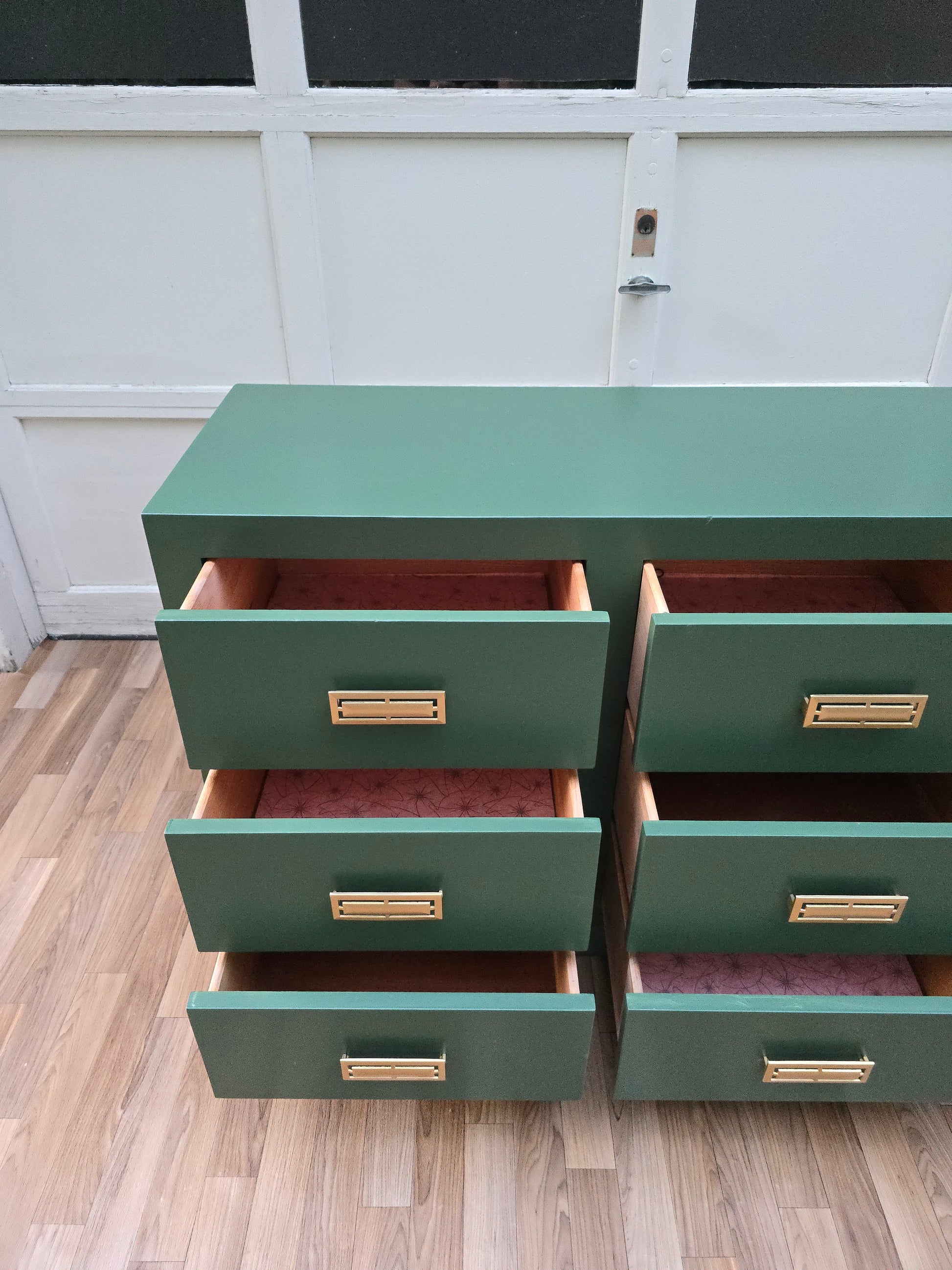 - Campaign-style dresser in deep botanical green