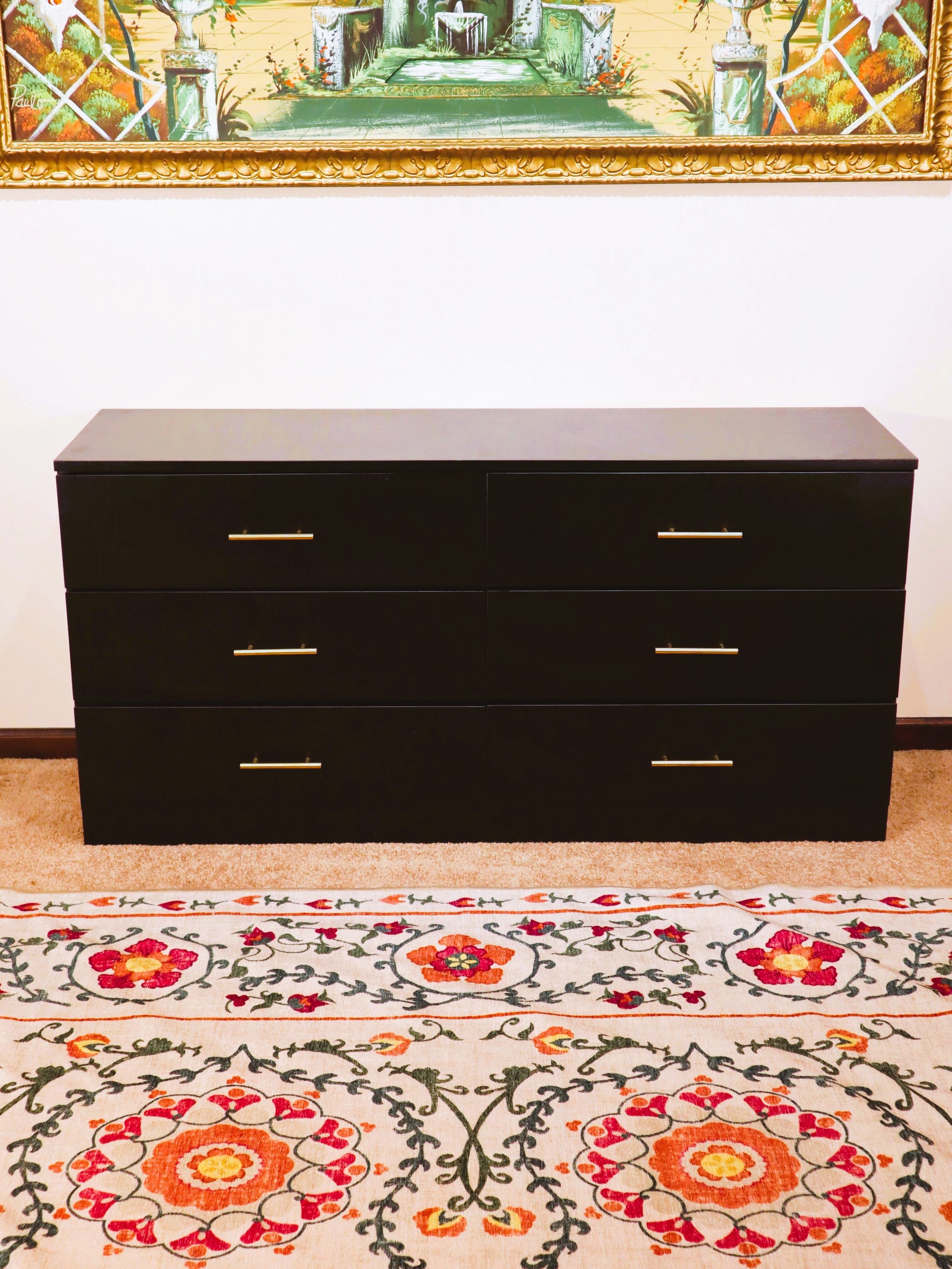Modern Minimalist Black 6-Drawer Low Dresser - Pre-Owned