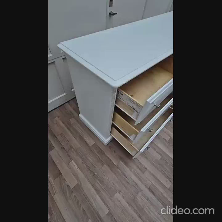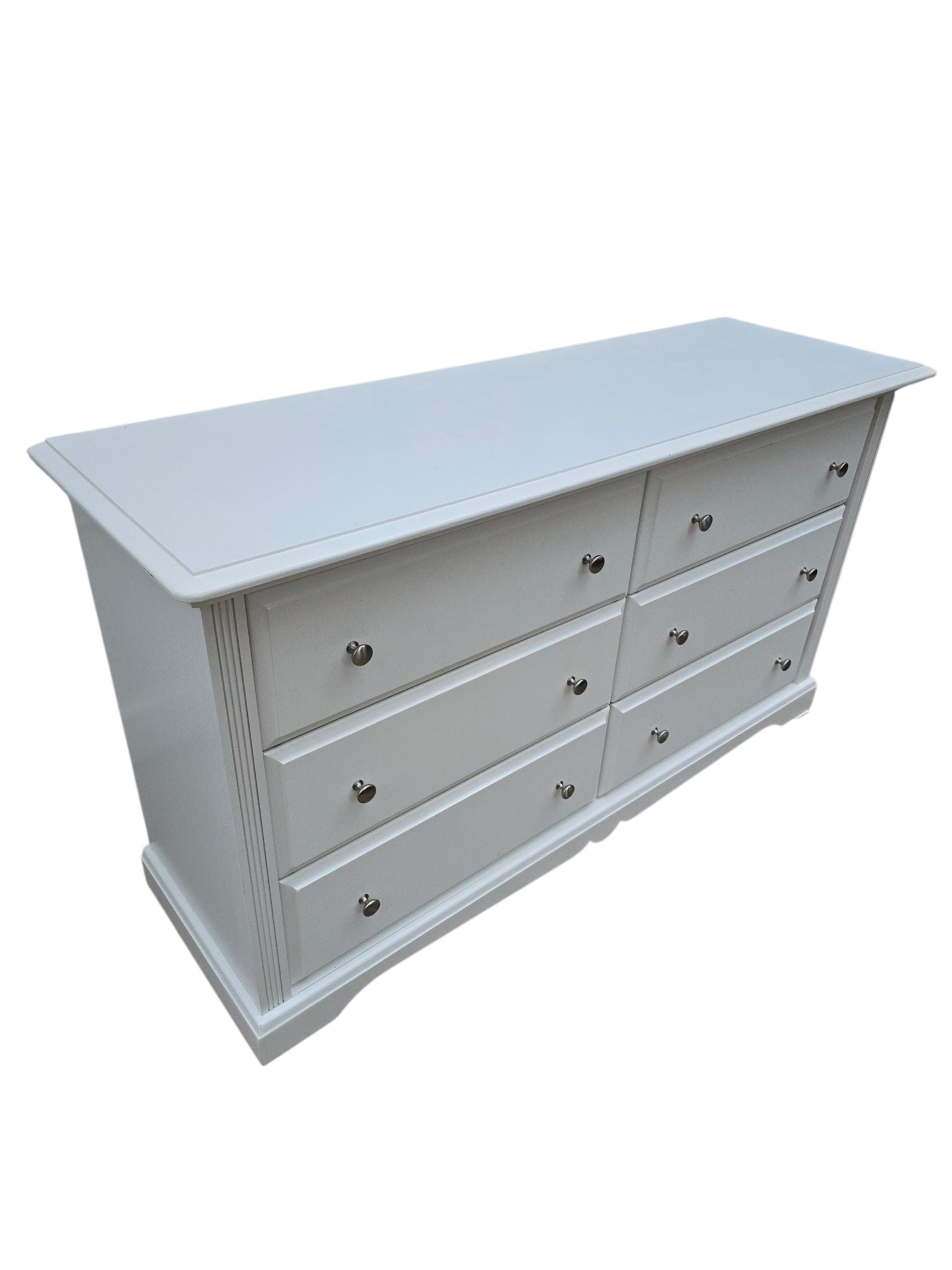 White 6-Drawer Dresser by Dutailier, Solid Wood Dresser with Nickel Knobs, Modern Farmhouse Bedroom Furniture